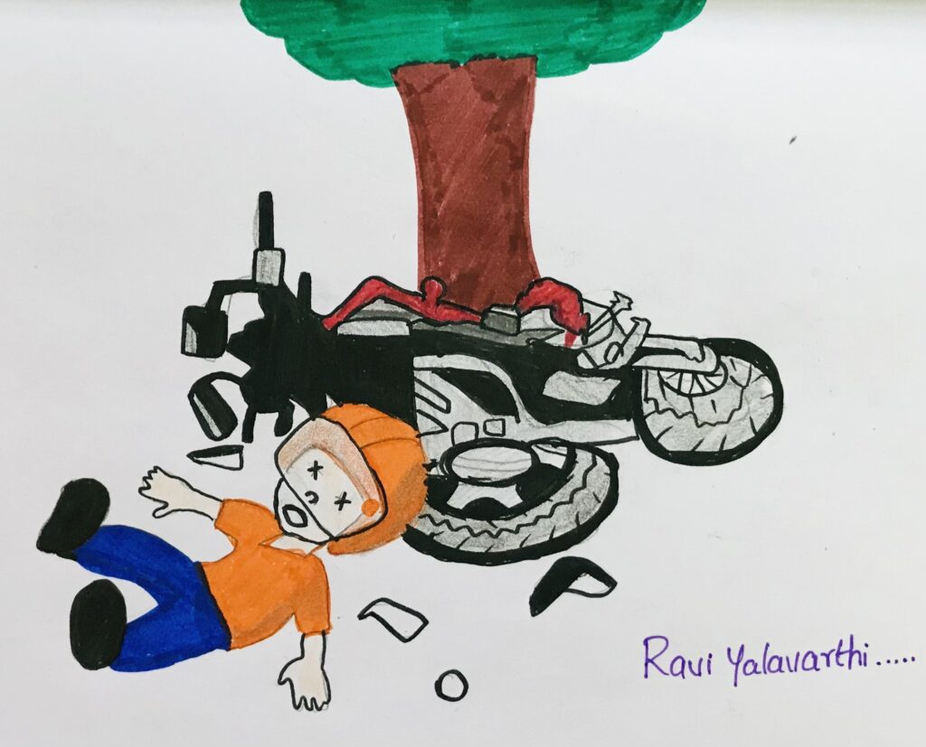 I dusted off my hands and stood up. We both walked towards the bike. As she came near to me and can see me clearly. She exclaimed, “It’s bleeding chinnu, on your face and on your hands!